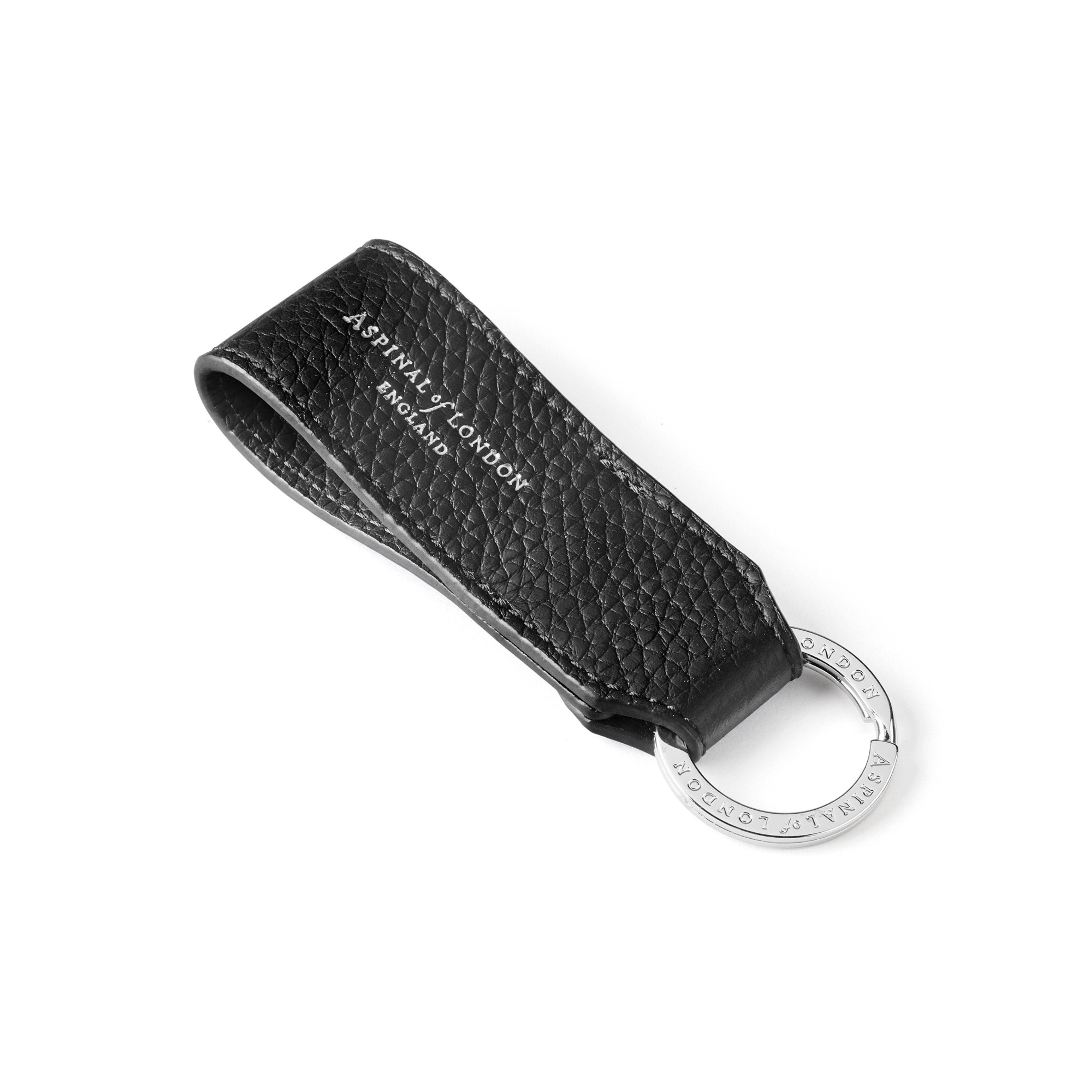 Aspinal of London small leather loop keyring. Luxury full-grain leather, signature details, stylish and pocket-friendly.